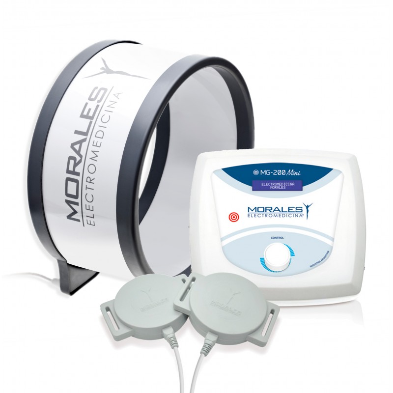 Equipo de magnetoterapia portable de 200 gauss de potencia y 100 Hz de frecuencia. MG 200 mini es el único equipo portable del mercado con 4 salidas simultáneas, intensidad de campo magnético regulable y hasta 17 pasos de frecuencia de pulsado. Además de ser liviano y pequeño, incluye bolso de regalo para su traslado.